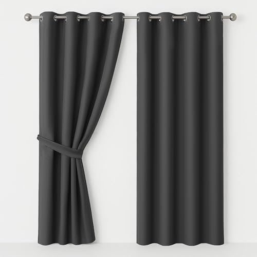 AMEHA Blackout Eyelet Curtains for Living Room Grey Curtains Bedroom, 46x54 Inch Drop Thermal Insulated Curtain Pair Panels with Tiebacks