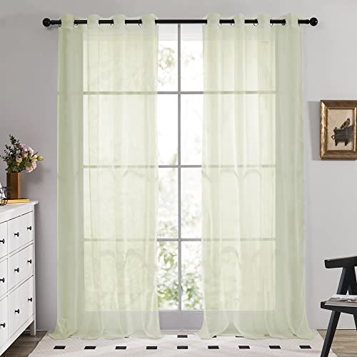 Deconovo Net Curtains for Windows, Semi Transparent Eyelet Voile Curtains for Living Room, Window Bedroom Sheer Panels, 55 x 102 Inch(Width x Length), Matcha Green, 1 Pair