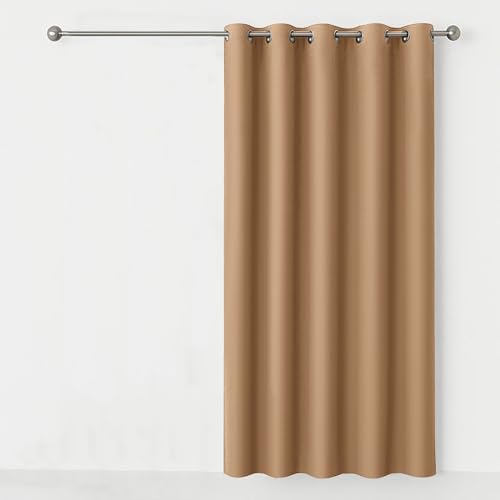 Imperial Rooms Eyelet Blackout Curtains for Living Room 66x84 Inch Beige Curtains for Bedroom Energy Saving Door Curtain One Panel with Tieback
