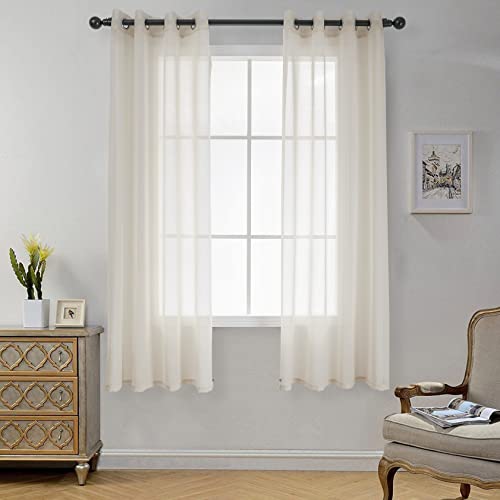 CUCRAF Net Curtains for Windows - Eyelet Curtains for Living Room & Bedroom, Voile Sheer Linen Curtains 90 drop pair, Wrinkle Resistant Solid Colour Curtains Easy to Clean and Machine Washable