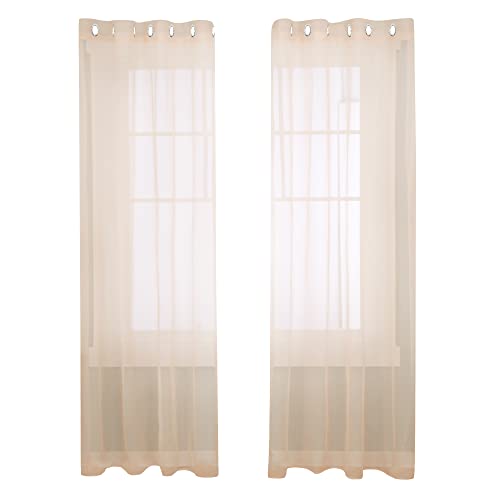 Bonzer Sheer Curtains Waterproof Indoor Outdoor 2 Panels Voile Eyelet Curtains for Living Room Bedroom Porch Pergola Cabana 54x95 Inch Beige