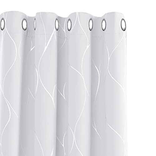 Deconovo Silver Wave Foil Printed Blackout Curtains, Thermal Insulated Eyelet Curtains for Living Room, 66" Width x 72" Length, Silver Grey, 2 Panels