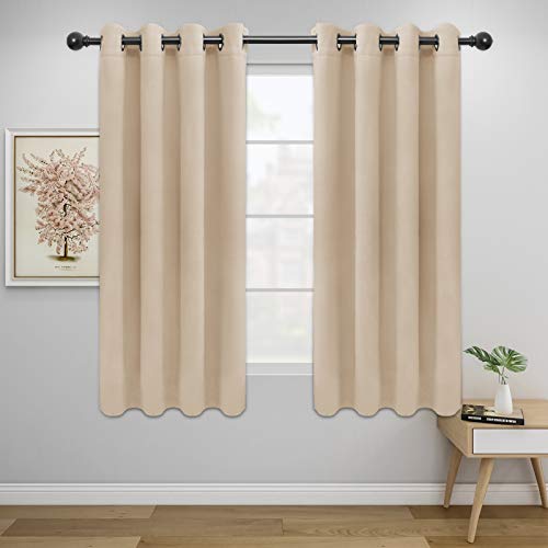 Easy-Going Blackout Curtains Solid Color Thermal Insulated Bridal Reducing Window Curtain with Eyelet Blackout Curtains for Living Room Bedroom, 2 Lengths(52 x 46 Inches, Beige)