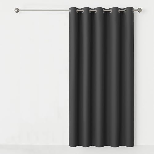 Deconovo Thermal Insulated Wide Curtains Grey Energy Saving Noise Reducing Eyelet Blackout Curtains for Living Room Bedroom, 90 x 72 Drop Inch, 1 Pair, Dark Grey