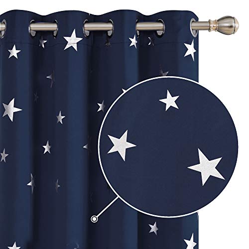 Deconovo Bedroom Space Curtains Thermal Insulated Eyelet Blackout Curtains for Living Room 52 x 54 Inch Drop Navy Blue 1 Pair