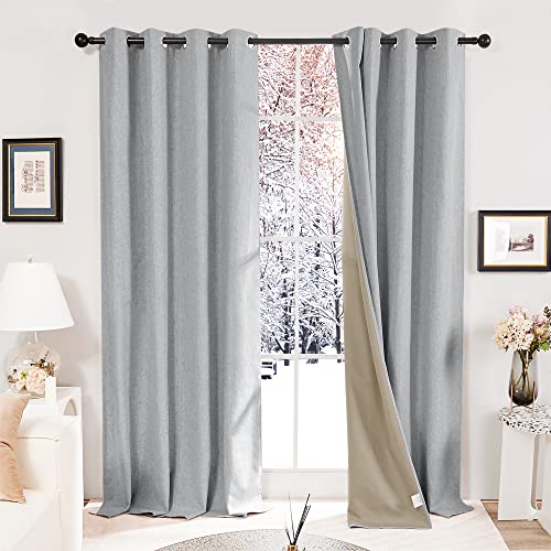 Deconovo Full Blackout Thermal, Curtains Faux Linen Winter Warm Eyelet Curtains for Living Room Greyish White W46 x L54 Inch One Pair