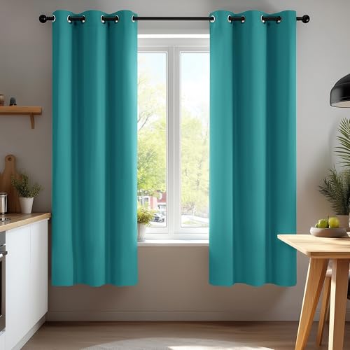 Deconovo Home Decoration Blackout Curtains Thermal Insulated Curtains Eyelet Curtains for Living Room Turquoise W42 x L63 Inch One Pair