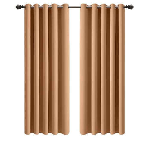 Deconovo Thermal Insulated Blackout Curtains Eyelet Curtains for Living Room Tan Brown 42 x 84 Inch 2 Panels