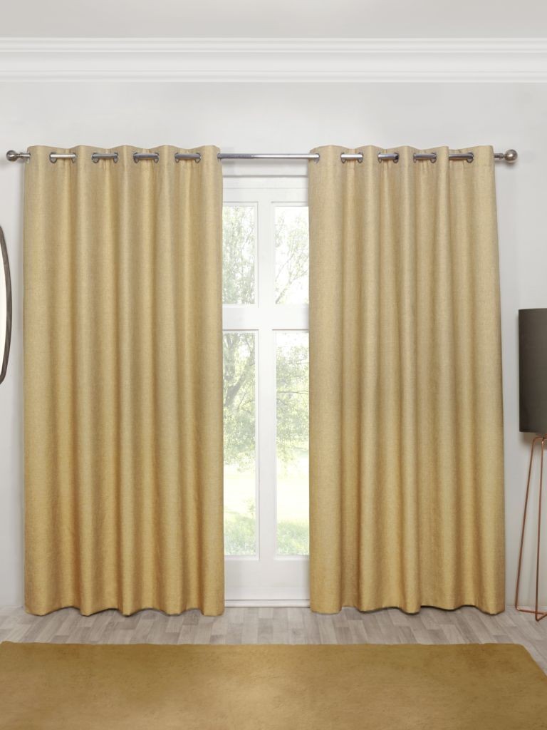 (66" x 90" (167cm x 228cm)) Yellow Curtains Eyelet Ready Made Bedroom Curtain