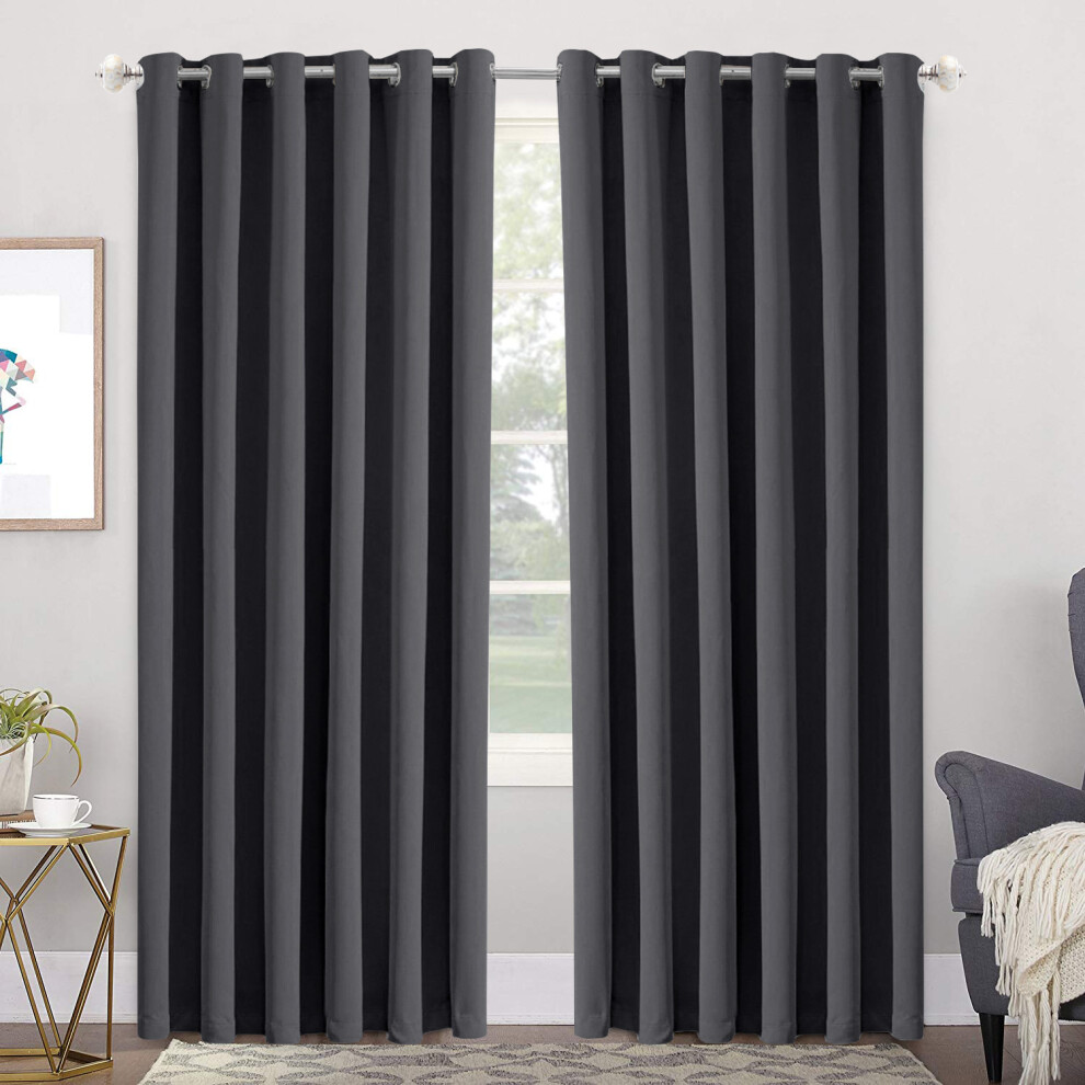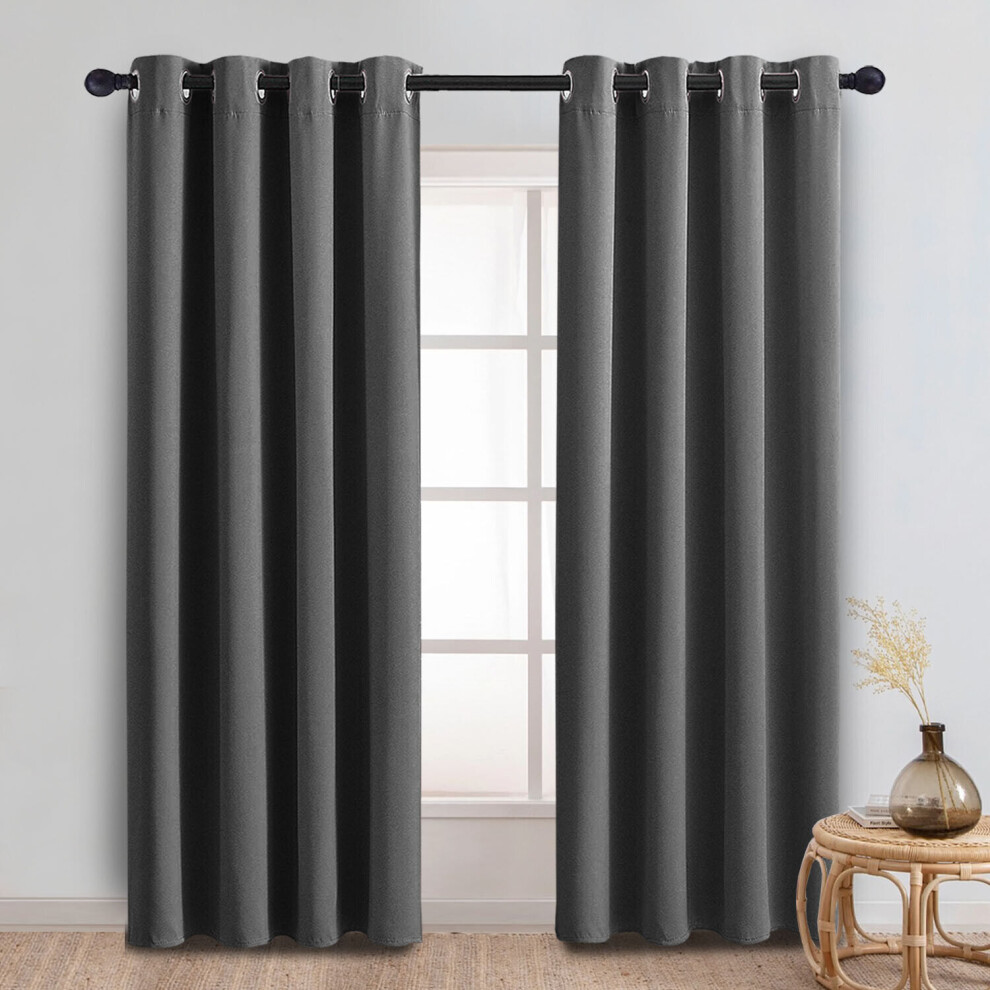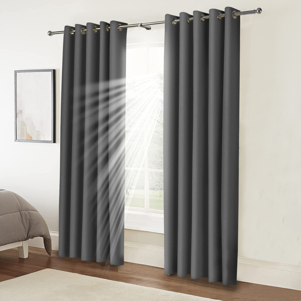 (Dark Grey - 260 Gsm, 46" x 54") Blackout Eyelet Curtains Thermal Ready Made Ring Top