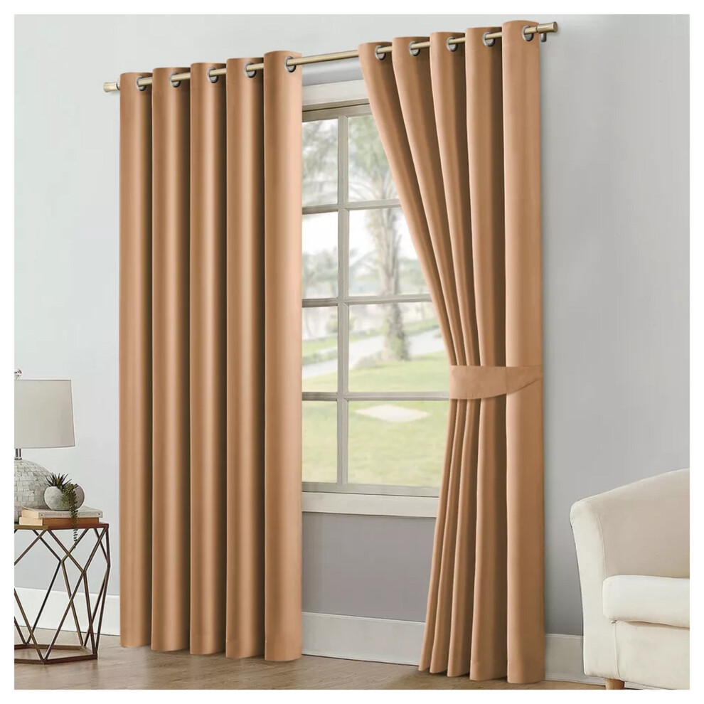 Solid Colour Eyelet Curtains Blackout Ready Made Ring Top Cosmos Gold 46x54"