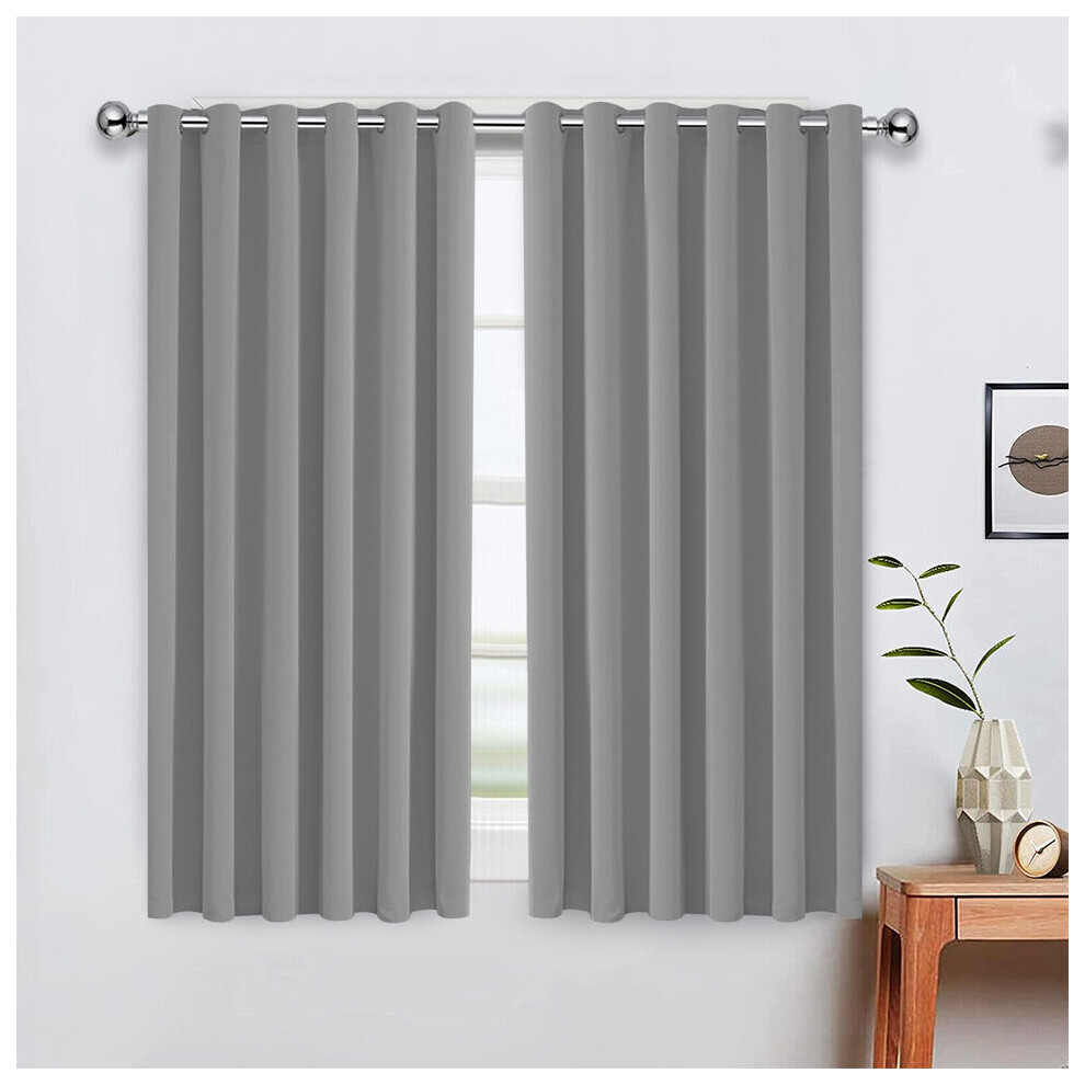 (GREY, 66 x 54) Soft Velvet Curtains Eyelet Ready Made Fully Lined