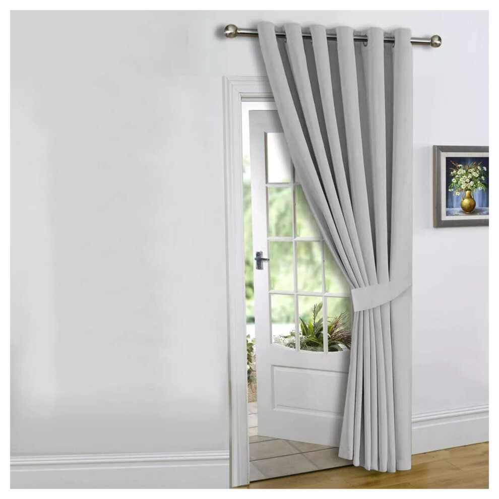 (GREY, 66 x 84 DOOR CURTAIN) Soft Velvet Curtains Eyelet Ready Made Fully Lined
