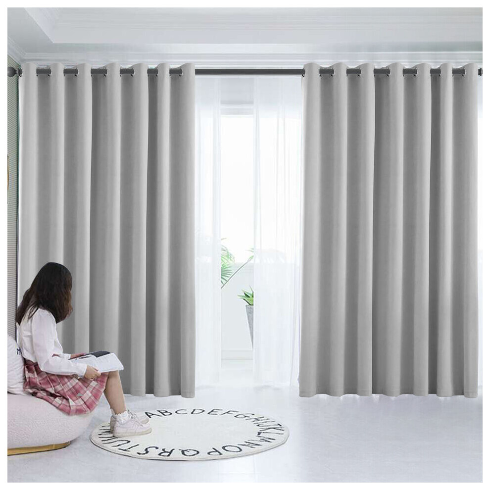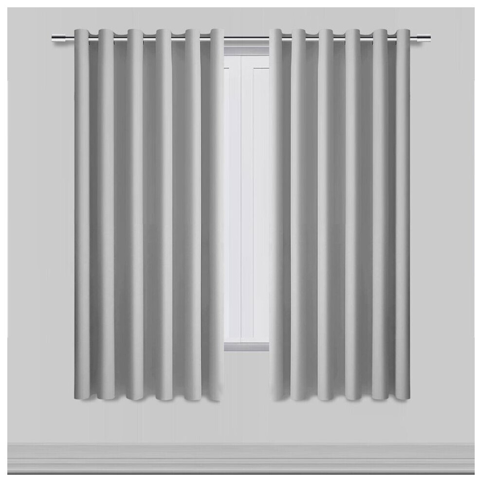 (Silver - 260 Gsm, 66" x 90") Blackout Eyelet Curtains Thermal Ready Made Ring Top