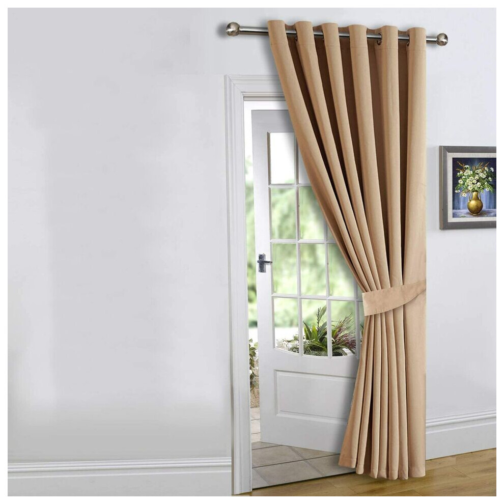 (BEIGE, 66 x 84 DOOR CURTAIN) Soft Velvet Curtains Eyelet Ready Made Fully Lined
