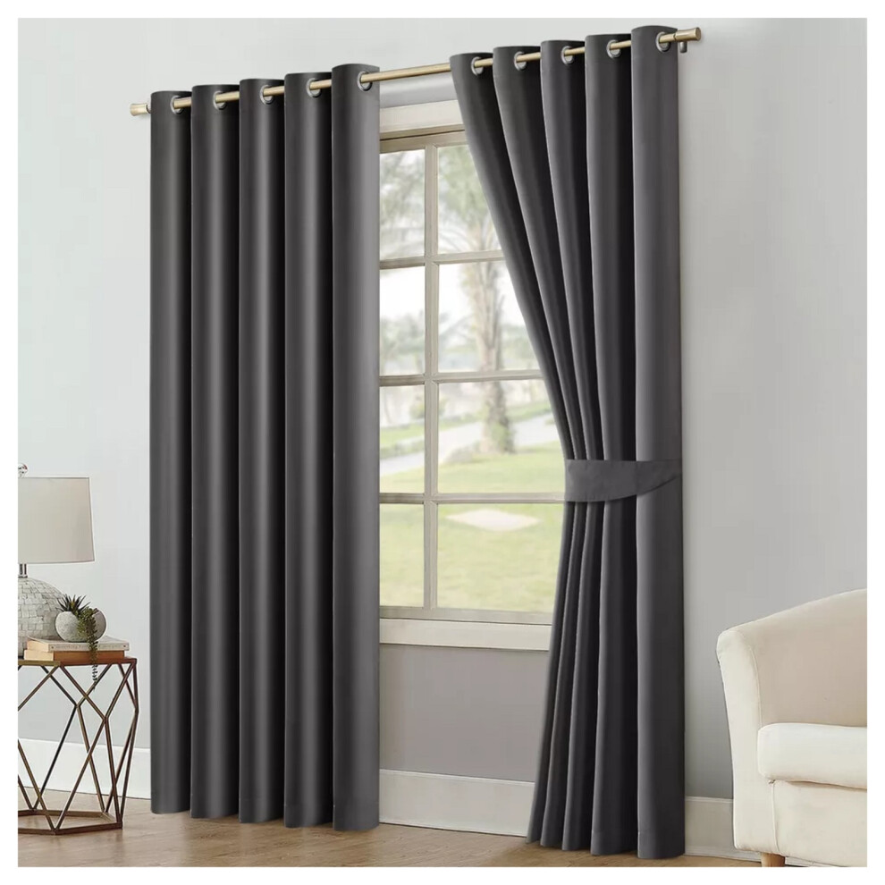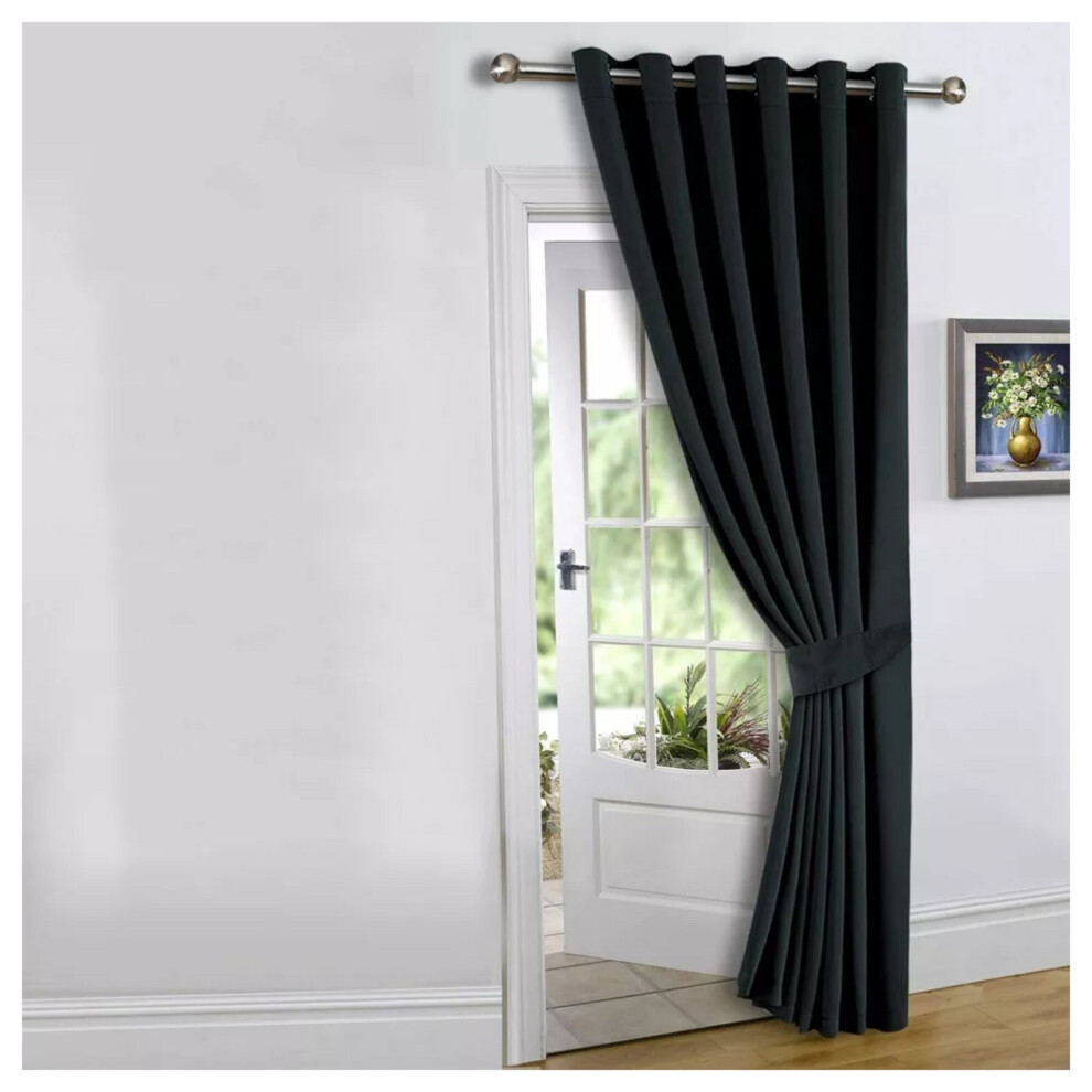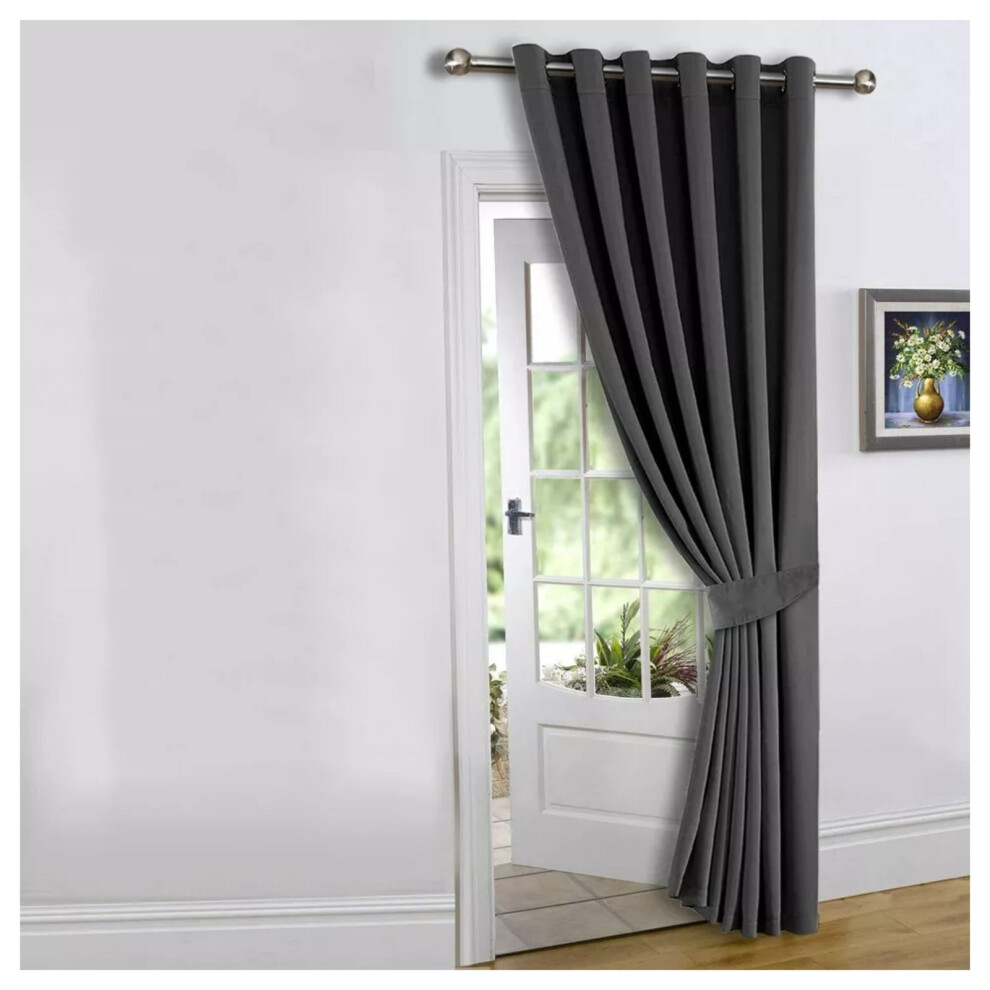 (Dark Grey, 66'' x 84'' (SINGLE DOOR CURTAIN)) BLACKOUT EYELET CURTAINS READY MADE PAIR+2 TIEBACK