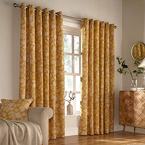 Furn Irwin Ringtop Eyelet Curtains (Pair) -Ready Made-Polycotton-Mustard-168cm x 137cm (66" x 54" inches), Cotton, Mustard, 66x54 (168x137cm)