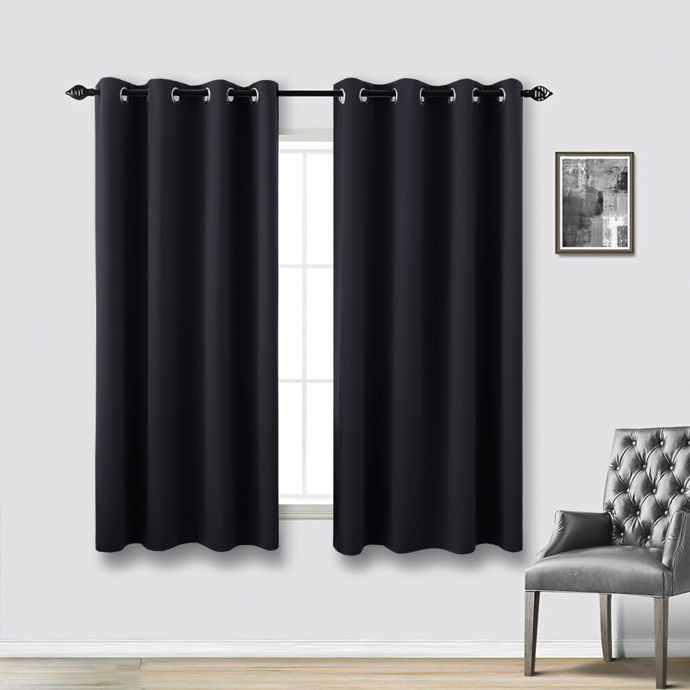(Black - 260 Gsm, 46" x 54") Blackout Eyelet Curtains Thermal Ready Made Ring Top