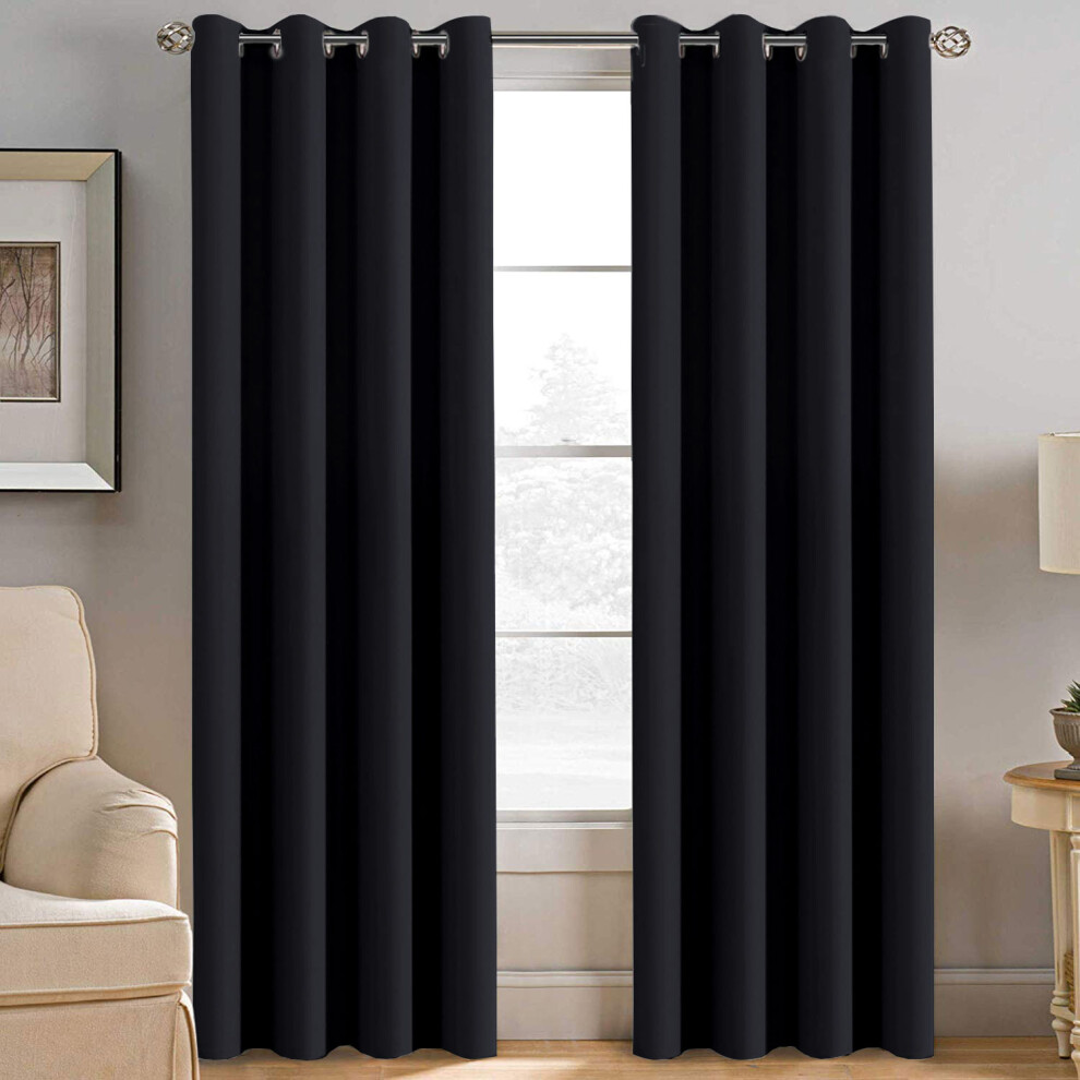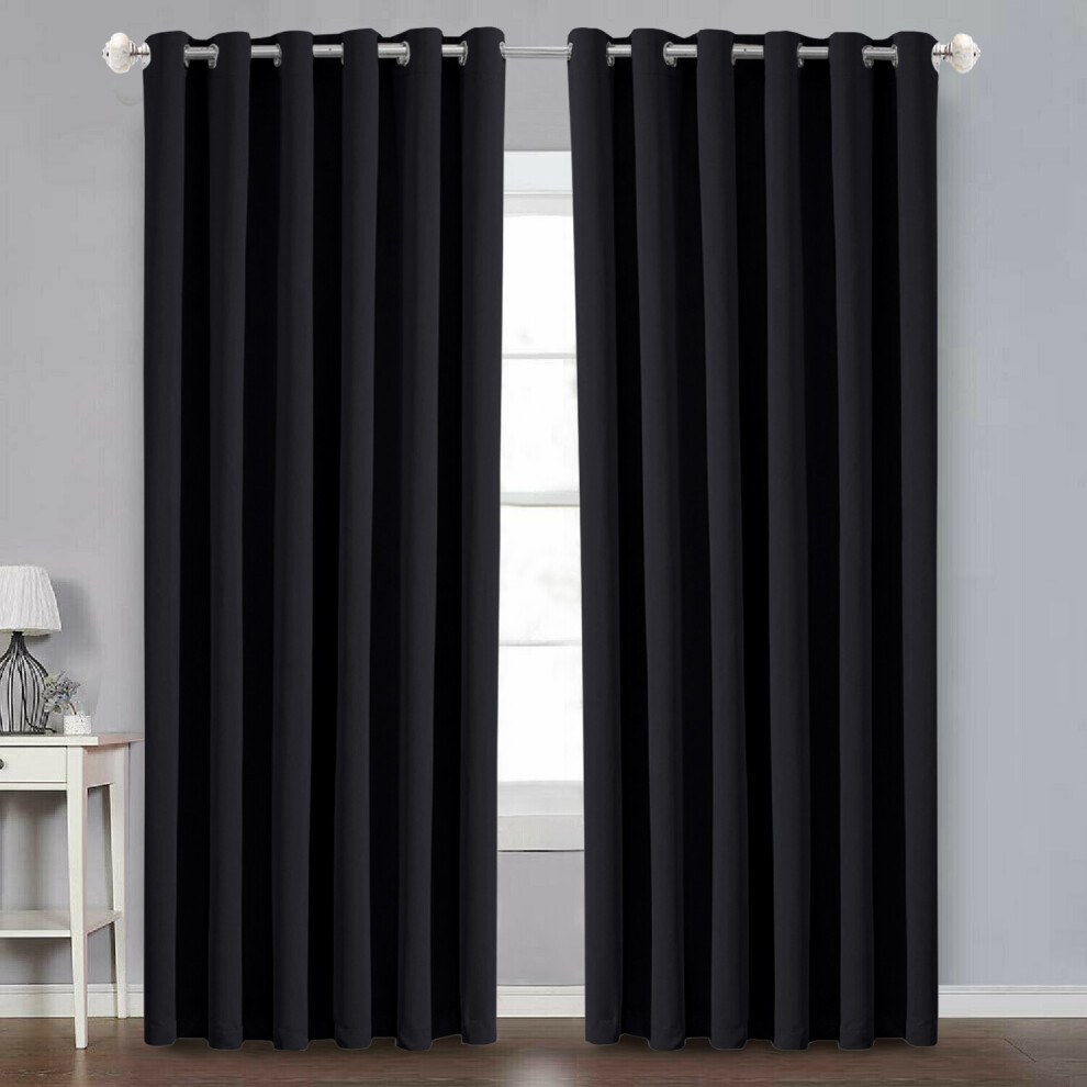 (Black - 260 Gsm, 66" x 72") Blackout Eyelet Curtains Thermal Ready Made Ring Top