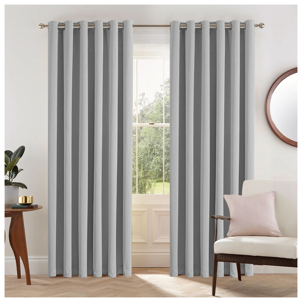 (Silver - 260 Gsm, 46" x 54") Blackout Eyelet Curtains Thermal Ready Made Ring Top