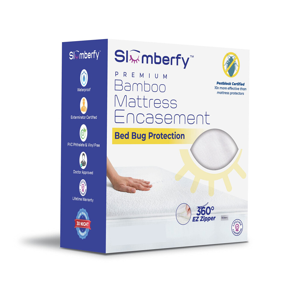 Twin Size Waterproof Viscose Made from Bamboo Mattress Encasement by Slumberfy - Premium Skin-Safe Mattress Protector with 360 EZ Zipper Bed Bug Zip