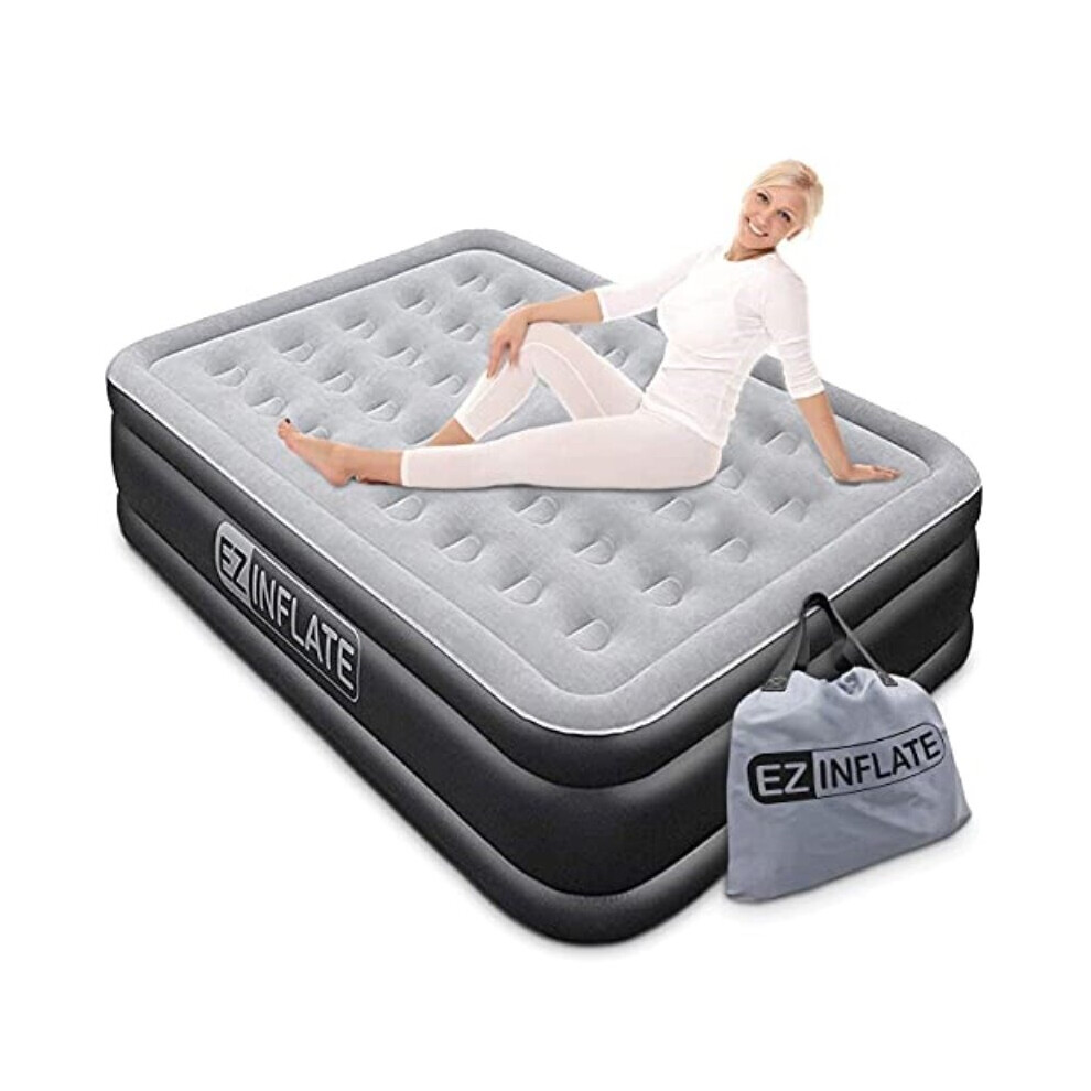 EZ INFLATE Double High Luxury Twin Air Mattress with Built in Pump, Inflatable Mattress, Twin airbed with Flocked top, All Purpose Twin Blow up Bed, H