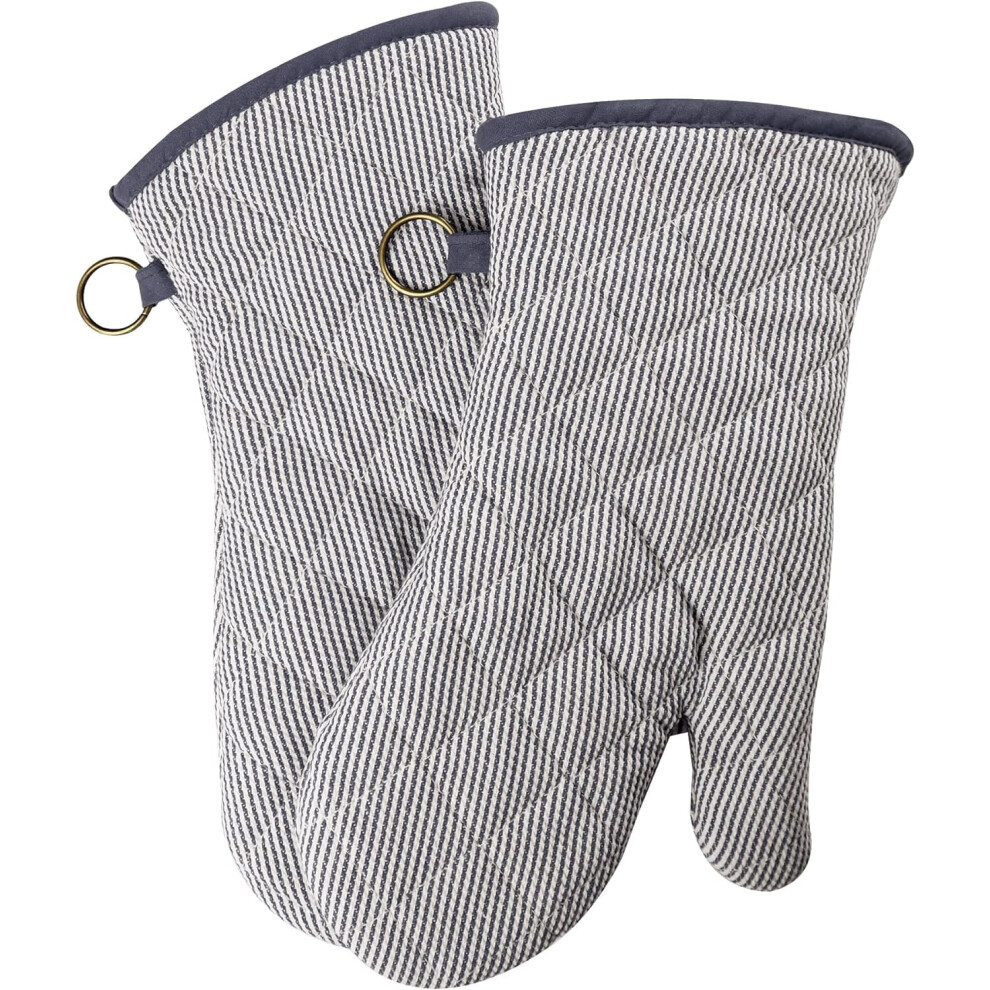 1 Pair Yarn-Dyed Cotton Oven Mitts, Heat Resistant to 470F, Machine Washable, for Cooking/Baking/BBQ â Grey