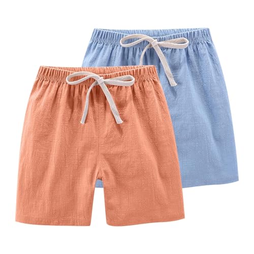 ofeirhz Short Packs Girls Linen Shorts 2 Pack Comfy Elastic Waist Loose Boys Lightweight Shorts for Kids 213 Years Valentines Day Short Boys (F, 2-3 Years)