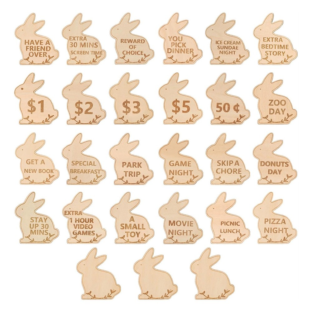 Kids Easter Egg Fillers Wooden Easter Reward Tokens Family A F2V33656