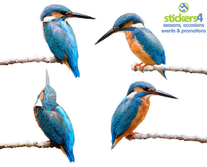 Set of 4 Photorealistic Kingfisher Window Cling Stickers