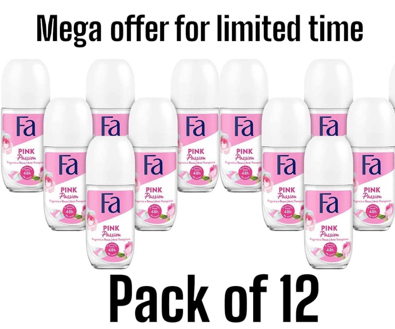 FA PINK PASSION ROSE DEODORANT ROLL ON 50 ML PACK OF 12 MEGA OFFER Buy Now