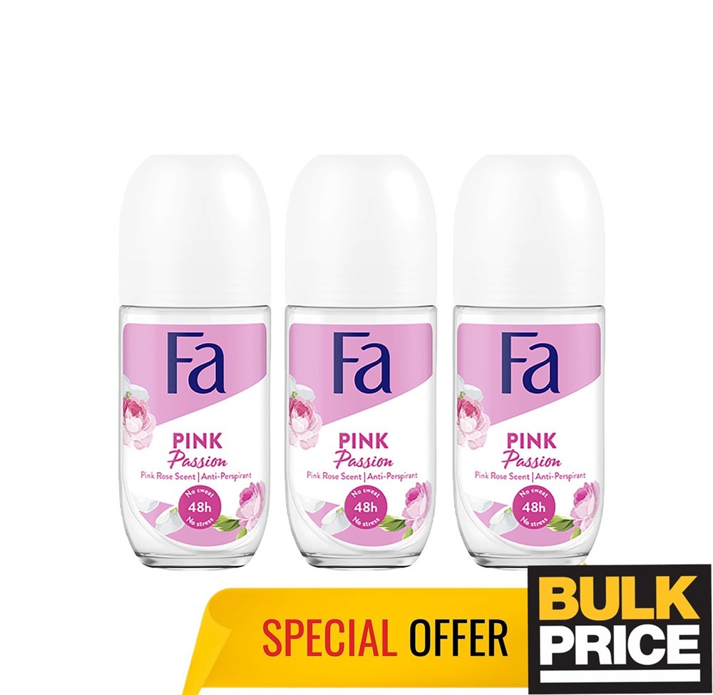 FA PINK PASSION ROSE DEODORANT ROLL ON 50 ML -3 PACK Free P&P