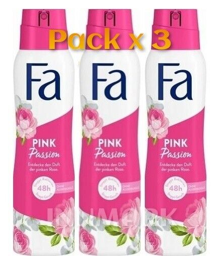FA PINK PASSION DEODORANT ROSE SCENT FRIENDLY FORMULA FREE ALUMINIUM 3 x 150ml
