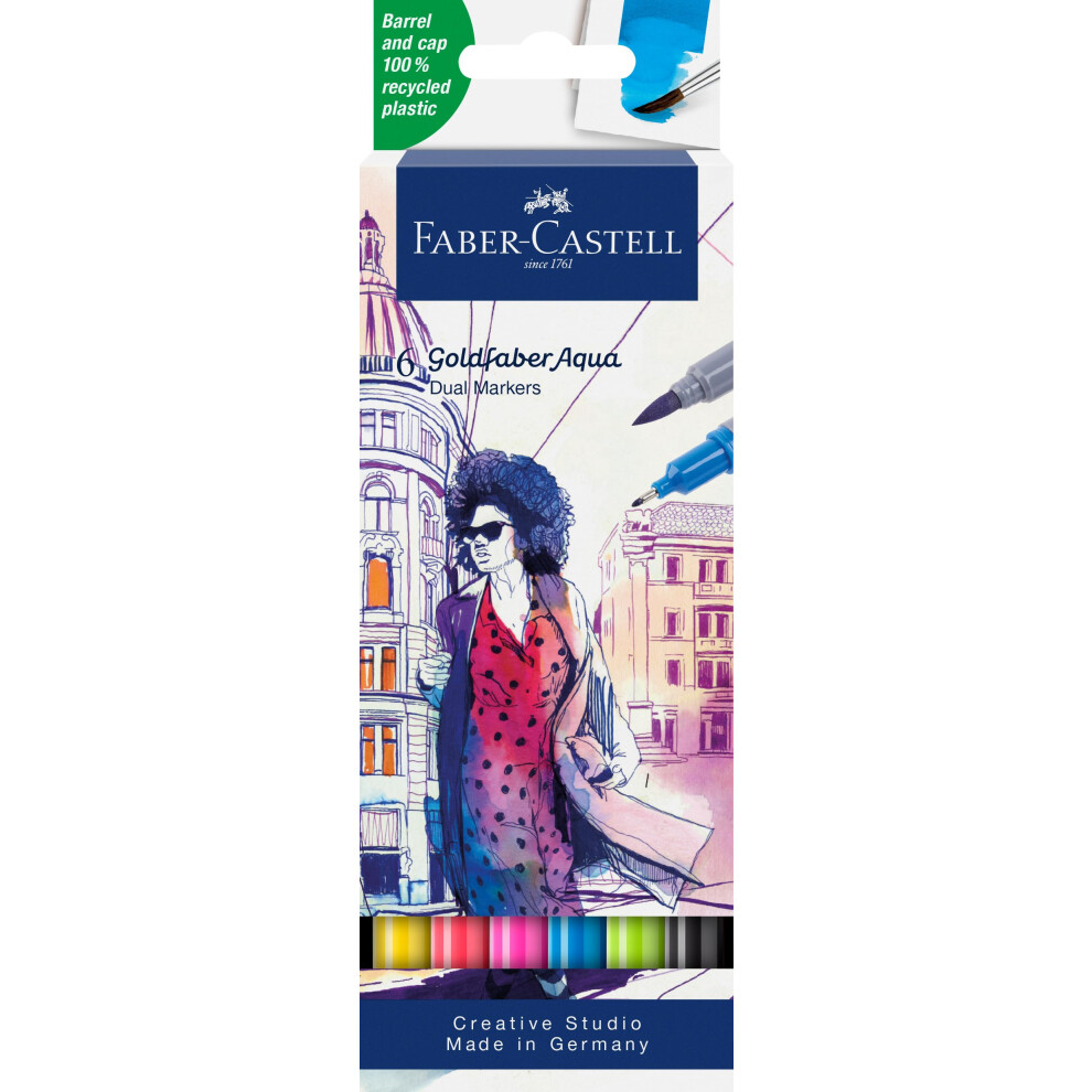 Faber-Castell Creative Studio Goldfaber Aqua Dual Marker, Multicoloured, Marker Wallet Of 6, For Art, Craft, Drawing, Sketching, Home, School,