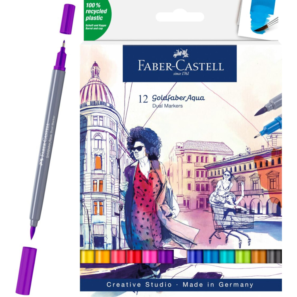 Faber-Castell Creative Studio Goldfaber Aqua Dual Marker, Multicoloured, Marker Wallet Of 12, For Art, Craft, Drawing, Sketching, Home, School,