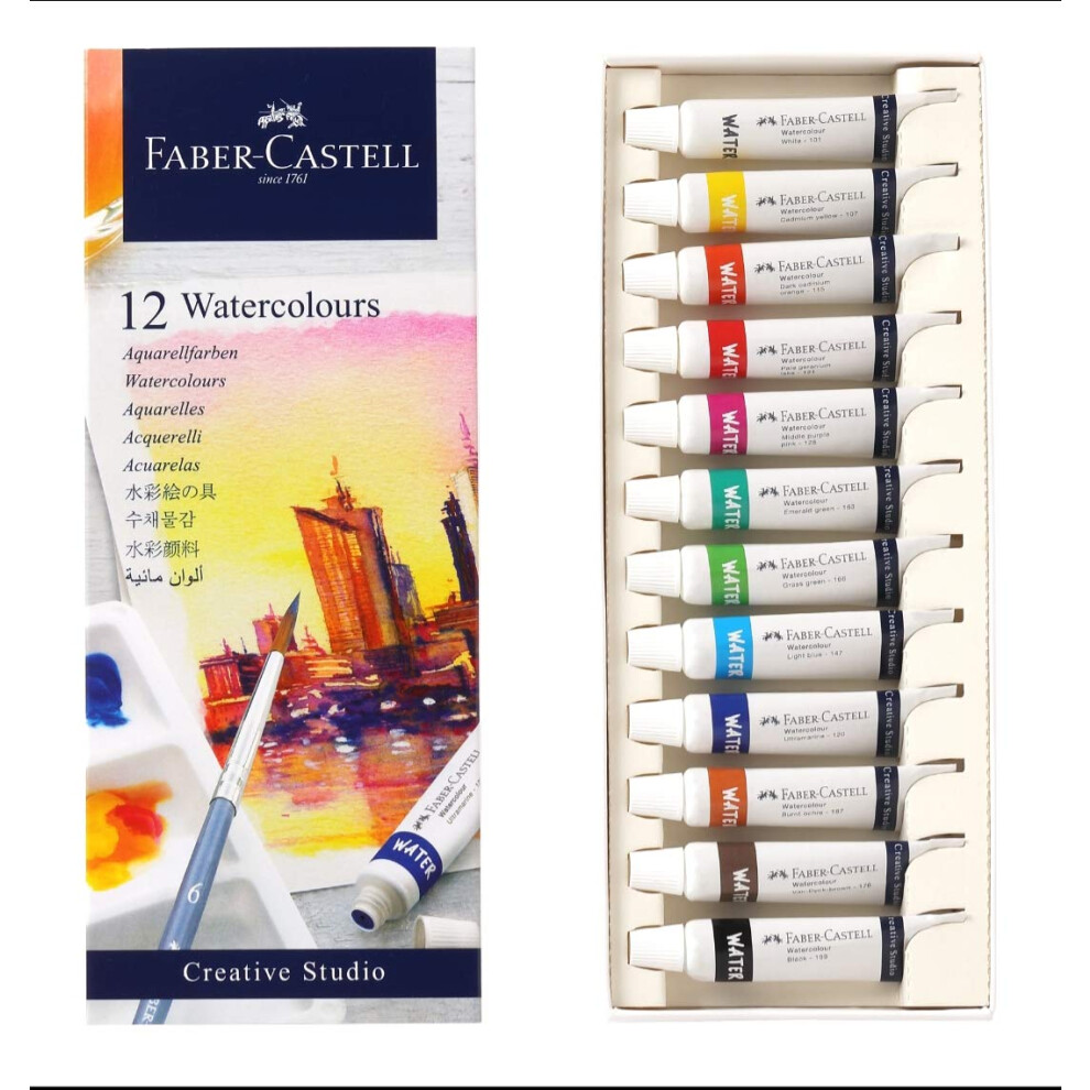 Faber-Castell Creative Studio 169612 Watercolour Paints 12 Tubes 9 ml Each Including Mixing Palette