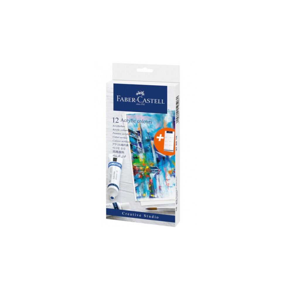 Faber-Castell Creative Studio Acrylic Colour, Cardboard Wallet of 12, with Swatch Card, Multicoloured, for Art, Craft, Drawing, Sketching, Home, School, University, Colouring