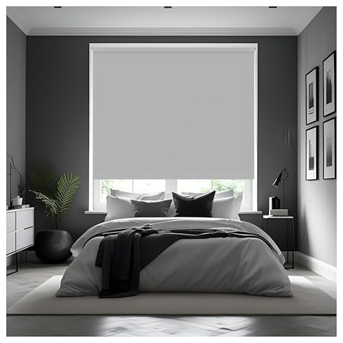 Thermal Insulated Blackout Fabric Roller Blinds, Easy Fit Room Darkening Shades Fittings Included Light Grey (Width 210cm x Length 165cm, Blackout, Grey) (BK004)