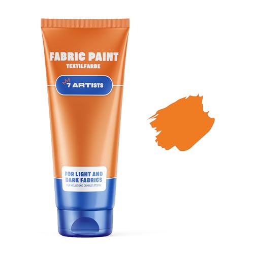 7 Artists Acrylic Orange Fabric Paint 60 ml - Permanent Textile Paint for Clothes & Textiles - Non-Toxic, Easy to Wash Hands