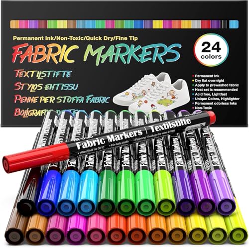 24 Fabric Pens Permanent for Clothes White T Shirt Design Kit Canvas Tote Bag Pillowcases Plain Cotton Bags Shoes Baby Shower Games, and Craft Paint Pens Art Markers for Adults Kids Gift