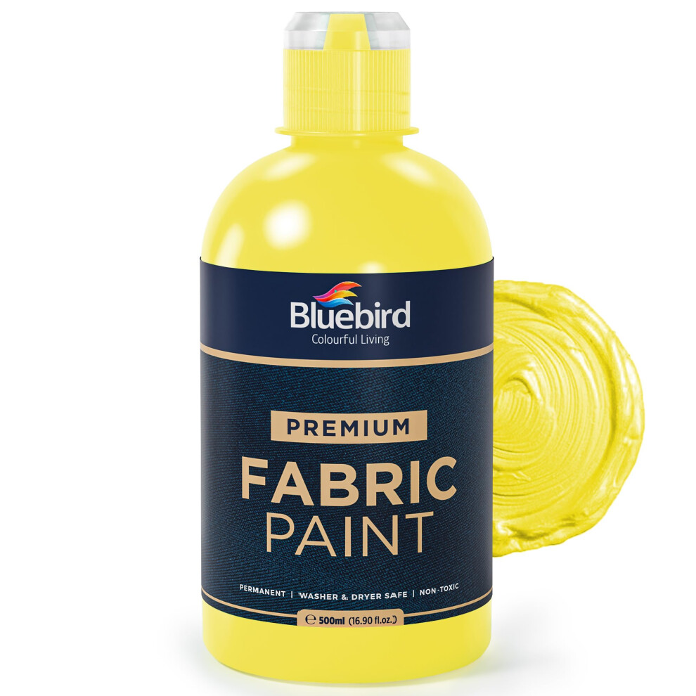 BLUEBIRD Fabric Paint Lemon Yellow 16.9 Fl Oz - Permanent Fabric Paint for Clothes Costumes Halloween Decorations DIY Crafts & Furniture Upholst