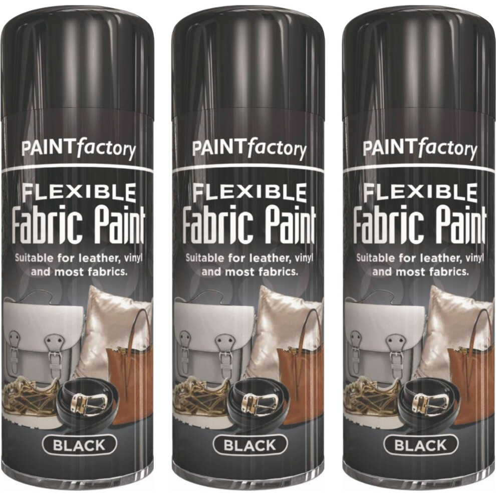 3 x 200ml Black Fabric Spray Paint Flexible Vinyl Clothes Textile