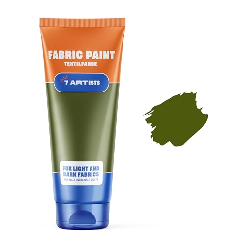 7 Artists Acrylic Olive Green Fabric Paint 60 ml - Permanent Textile Paint for Clothes & Textiles - Non-Toxic, Easy to Wash Hands