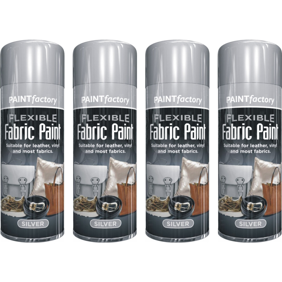 4 x 200ml Silver Fabric Spray Paint Flexible Vinyl Clothes Textile