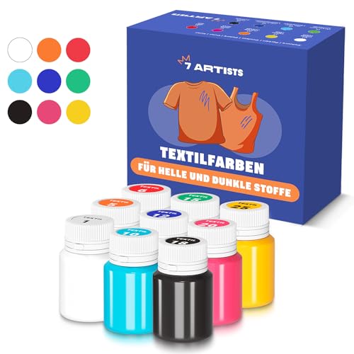 7 Artists Acrylic Fabric Paint - Premium Fabric Paints Permanent for Clothes - Non-Toxic Silk Paint for Children - 9 Fabric & Textile Paints - Fabric Paint for Clothes - Easy Washed Hands