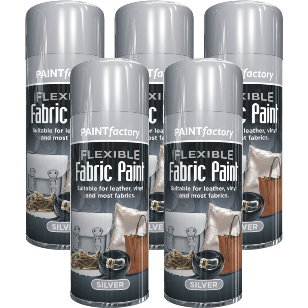 5 x 200ml Silver Fabric Spray Paint Flexible Vinyl Clothes Textile