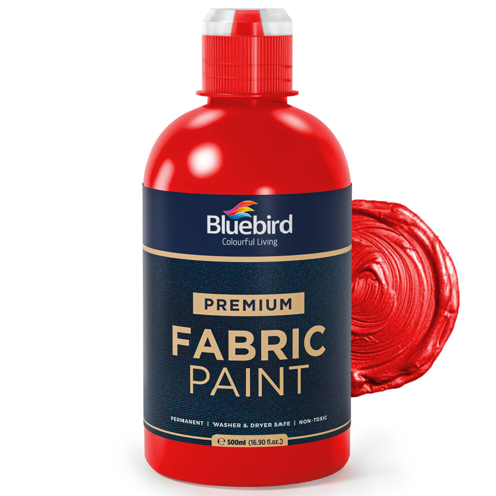 BLUEBIRD Fabric Paint Vermilion Red 16.9 Fl Oz - Permanent Fabric Paint for Clothes Costumes Halloween Decorations DIY Crafts & Furniture Uphols