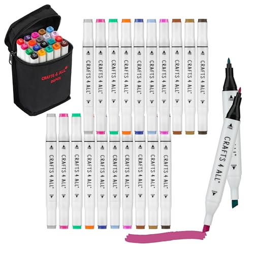 Crafts 4 ALL Fabric Paint Pens - Set of 20 Premium, Permanent, Dual Tip, Minimal Bleed Fabric Markers for Clothes, Bags, Shoes & Canvas