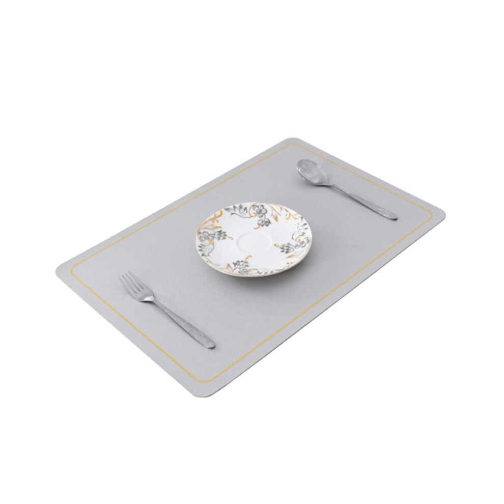 Dining Table Mats - Washable Fabric Rectangular Leather Placemats for Bowl Plate Protection in Gray