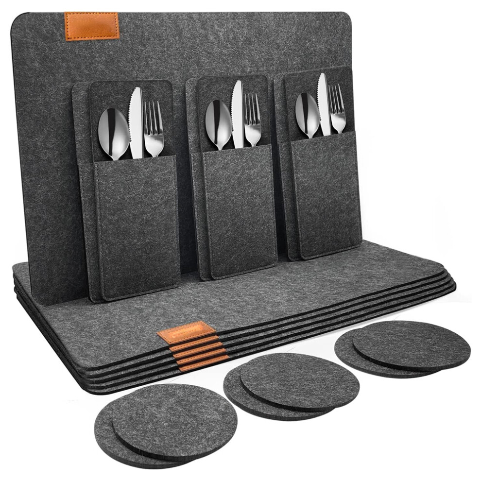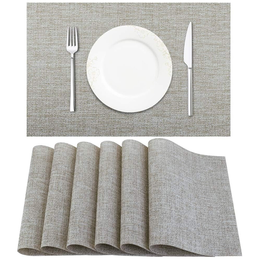 Wracra Grey Placemats Washable Set of 6, 30 x 45 cm Fabric Table Placemats, Cot